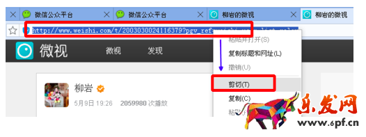 鼠標移動到視頻地址欄右鍵“剪切鏈接”