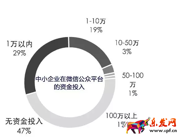 ▲上面的統計圖表是2015年12月份最新的微信營銷統計,無資金投入的中小企業占比達到47%,意味著有一半的中小企業在公眾號上面是沒有投入什么資金的。6|3h rGx0v3M:R,R)F