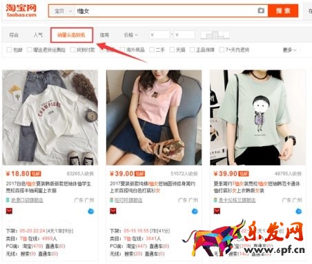 我們搜索主詞(就是大詞,基本都是類目詞),比如:T恤女,選擇按照銷量排序。然后去算出首頁的價格分布,比如:30元以下的是5件,30-50元的是15件,50-70元的是10件,70元以上的是14件。我們選出價格最多的價格區間作為我們的價格區間。然后我們把這個價格區間的所有寶貝價格相加,然后除以寶貝數,作為我們的定價。
