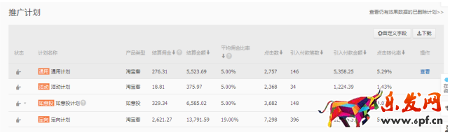下面這兩張圖是淘寶女裝的淘寶客方案后臺,由于客單價較低,所以傭金設置的也不高,但點擊轉化率還是挺好的。