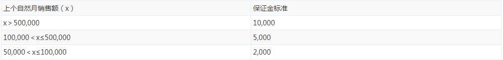也就是說如果你之前已經交過2000的保證金,上月的銷售額沒有超過10萬的話,保證金還是2000,不用補繳;若銷售額超過10萬、少于50萬,就需要補繳3000保證金。記得及時補繳,否則會影響店鋪的運營的!
