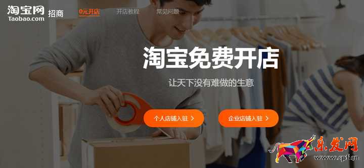 1、電腦端打開淘寶網,點擊免費開店字樣: