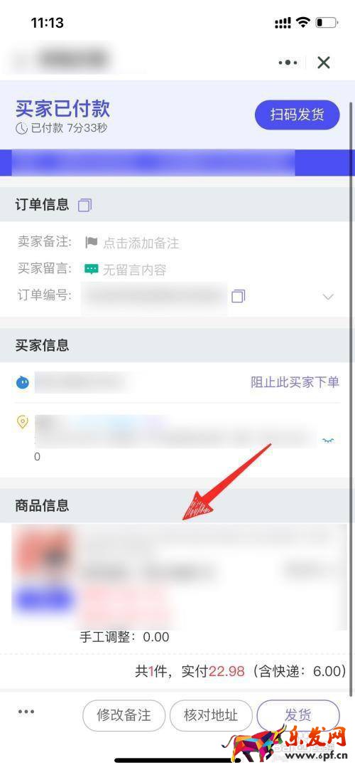 第三步、在訂單信息頁面里查看具體的買家信息。