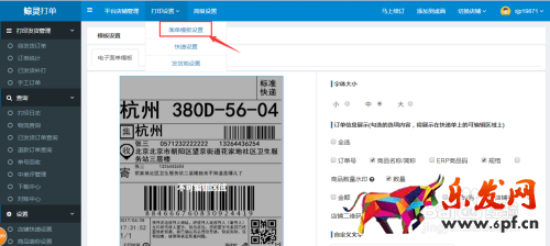 面單模板設置,點擊【打印設置】—【面單模板設置】—【電子面單模板】設置。