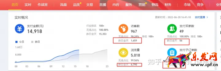 生意參謀首頁,可直接看到昨天的宏觀數據,訪客數,支付買家數,瀏覽量,也可以通過左邊的折線圖快速看到昨天交易數據和今天的交易數據對比。