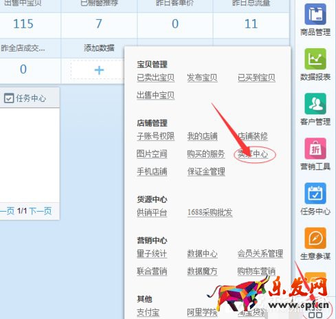 2、接著我們進入找到右下角,點擊找到賣家中心,如圖