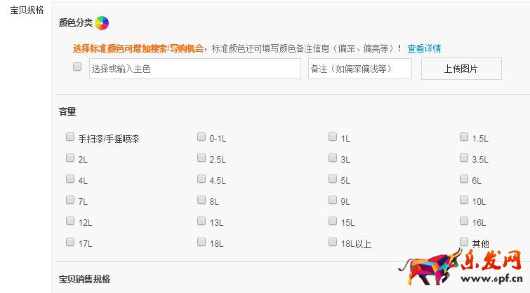 1.賣家點擊進入到淘寶賣家中心,之后點擊發布寶貝的功能選項,選擇好寶貝所在的類目級別之后,進入到下一步編輯的界面,在這個界面里面就有寶貝顏色的編輯和選擇,如下圖所示: