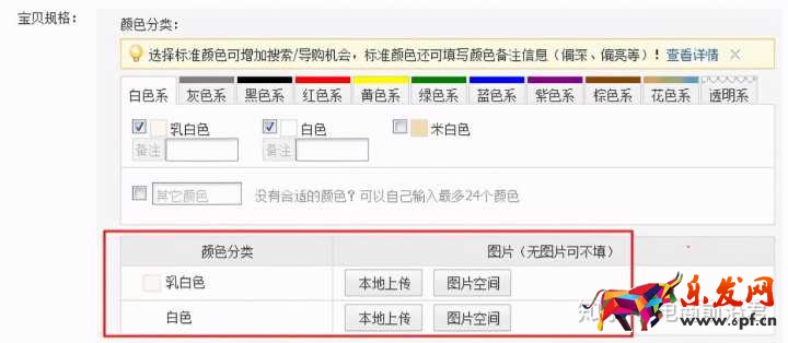 只要勾選需要的顏色選項,然后在截圖中紅框所示位置通過本地上傳或圖片空間上傳圖片即可哦。