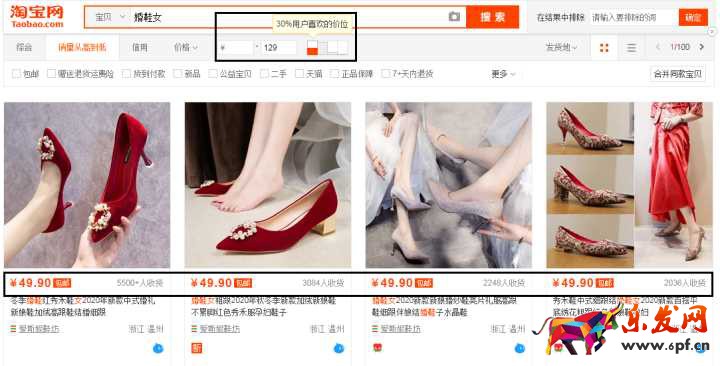 以我曾帶著學生干的“婚鞋女”為例,大家可以看到“0-129元”30%用戶喜歡的價位,這類“競品銷量”大都在2000-5000件