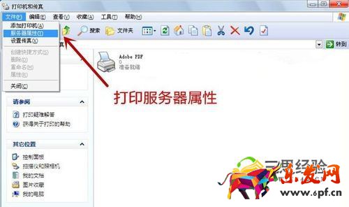 打開打印服務器屬性Windows 2000\xP操作系統 “開始”->“控制面板”->“打印機和傳真”,點擊頁面上的“文件”->“服務器屬性”Windows 7 \ 8 \ 8.1操作系統 “控制面板”->“硬件和聲音”-> “查看設備和打印”,左鍵點擊打印機圖標,選擇上面“打印服務器屬性”