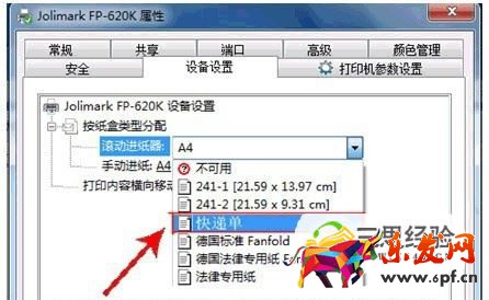 在“設備設置”的“滾動進紙欄”中選擇前面定義的紙張后點擊“應用”或“確定”