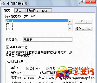自定義紙張:先測量紙張尺寸,在打印服務器屬性里面選擇“創建新格式\新表單”,在“表格名\表單名”里面填入自定義紙張名稱,并在下面“紙張大小”里面填入紙張寬度和高度(請注意紙張寬度數值,80列打印機寬度不要超過539.75px),設置好后點擊“保存格式\表單”