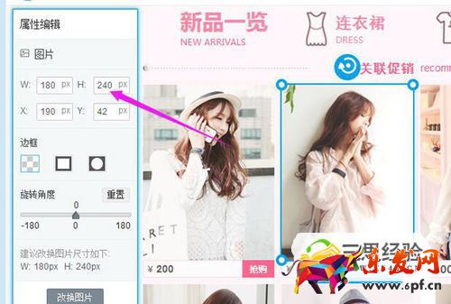 點擊關聯促銷的寶貝圖片,左側圖片屬性顯示的W和H是圖片的寬和高。