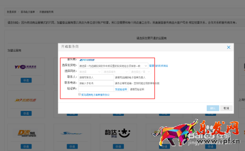 3 開通服務商進去,將所有的信息都填寫好,點擊確定,然后聯系快遞通過一下就可以了。