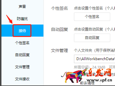 5、在左側菜單中,選擇“接待”點擊進入,如下圖所示。