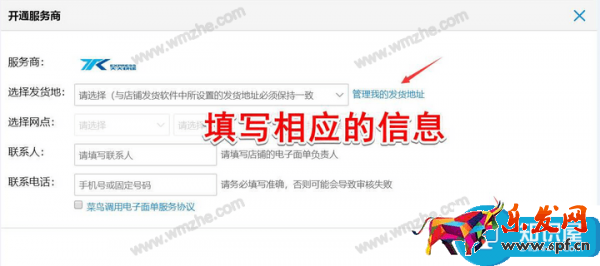 2、正確填寫商家的發貨地址、聯系人、聯系電話等相關信息。點擊“確定”按鈕。