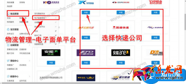 1、打開千牛工作臺電腦版,在“物流管理”中,點擊“電子面單平臺”,并且選擇商家需要開通的快遞公司,點擊“申請”按鈕。