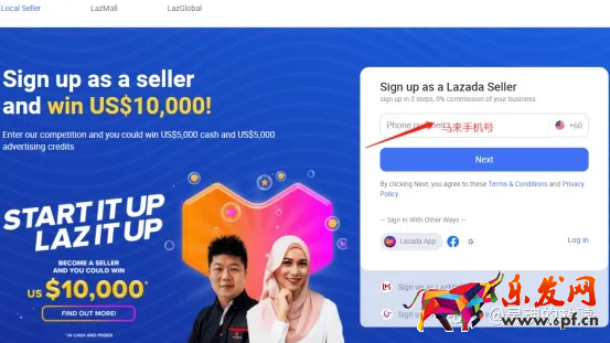 3.1、登陸Lazada 官網www.lazada.com.my,在官網上方點擊“sell on lazada”