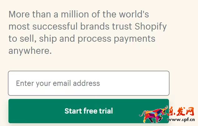 1、進入Shopify 官網,輸入你的郵箱,點擊Start free trial,就跳轉到注冊頁面了。
