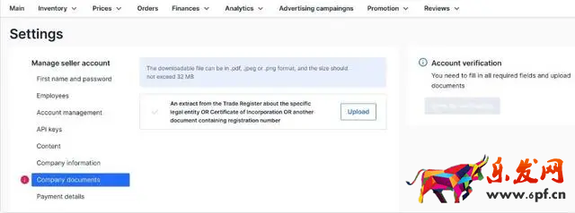 5、必須上傳公司證件,這是審核的必要內容。在OZON的申請頁面中,有一個名為“Company documents”的欄目,需要上傳以下其中一種格式的文件:PDF、JPEG或PNG。