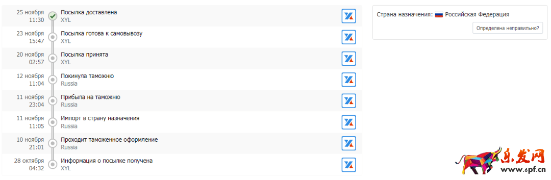 然后在OZON后臺個人中心,隨便復制在物流—倉庫訂單—運輸中訂單的追蹤單號,在查詢網站上點擊搜索,就會顯示該訂單詳細的物流軌跡。