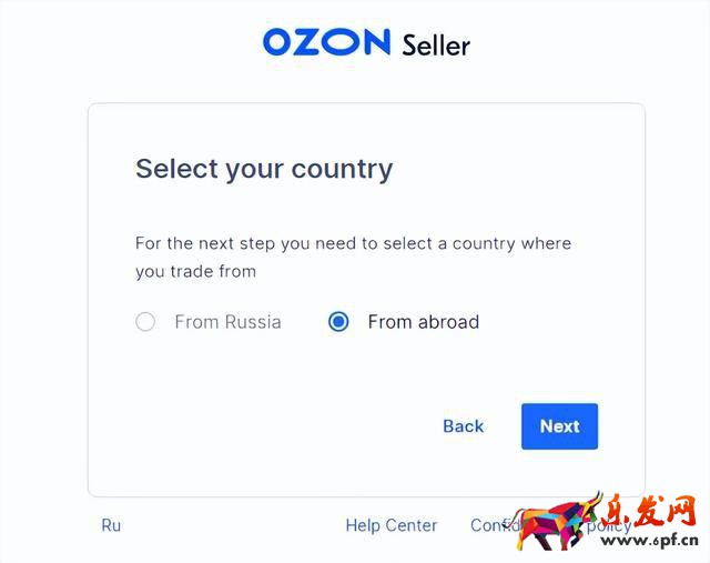 進入登錄頁面 。點擊注冊按鈕。https://seller.ozon.ru/app/country-select