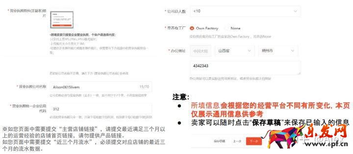 過往運營經驗如果為傳統外貿/傳統內貿/無經驗,不用提交流水及店鋪鏈接,但須有企業營業執照,首站開中國臺灣。