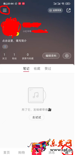 1.在小紅書app里,點擊“我”,再點擊左上角的三條橫杠。