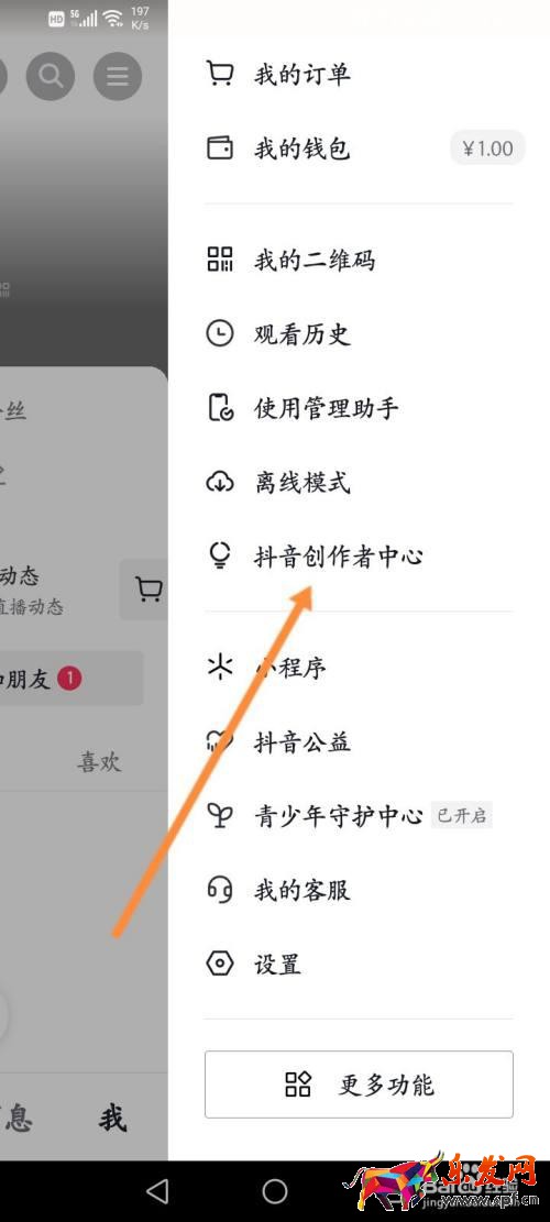 2 點擊上面的抖音創作者中心選項。