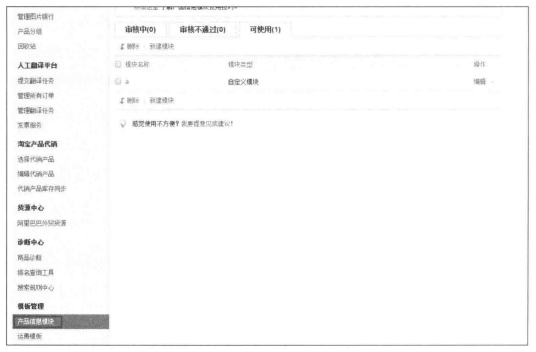 (1)在“賣家后臺”一“產品管理”—“模板管理”頁面中,可以找到“產品信息模塊”的入口。在這里可以對產品信息模塊進行管理操作。